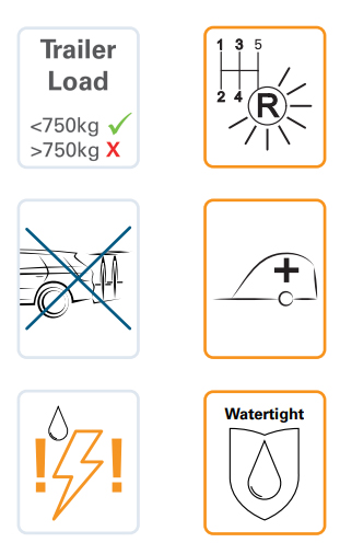 As towbar wiring kits with 13-pin connectors can transfer the signal for the reversing light (on pin no. 8), thus being able to replicate all of the towing vehicle‘s lighting functions, they are suitable for all types of goods trailers (light and heavy), caravans, bicycle carriers and luggage carriers.