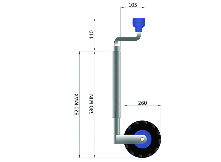 MP437 48mm 100Kg Pneumatic Telescopic Jockey Wheel