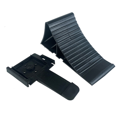 - Chock slides easily into the mounting plates and is retained by a quick release clip