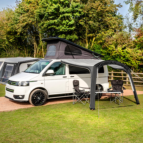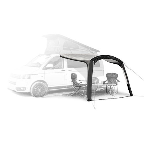 The Stratford Air Sun Canopy for Campervans provides shade but doesn’t keep you penned in like an awning! The sturdy airframe is quick and easy to inflate via a single point air tube. The canopy includes optional. removable sides for added privacy. Kadar strips allow for easy attachment to your awning rail, giving you extra stability. Hand pump, guy ropes, pegs and a compact carry bag are all included.