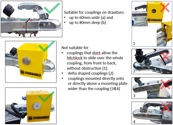 - hitches that don’t allow the hitchlock to slide over the whole hitch, from front to back, without obstruction